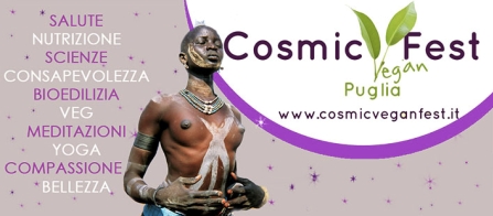 Si apre domani la terza edizione del “Cosmic Fest”, in programma quest’anno a Melpignano, nell’ex Convento degli Agostiniani con il patrocinio del Comune: come di consueto quattro giorni di iniziative, dimostrazioni, dibattiti nell’ambito della salute e del benessere, dell’ecologia, delle discipline olistiche, dell’alimentazione biologica e naturale. Quest’anno però, il festival vegan del Sud Italia ha deciso di dare ancora maggior spazio alla voce della compassione, rafforzando il proprio status di iniziativa a salvaguardia degli animali e di tutto il pianeta e garantendo un appuntamento in cui nomi d’eccellenza e tante realtà locali si uniscono per dare vita a un piccolo grande festival unico nel suo genere, che a fine estate sbarcherà anche nella magica Matera.