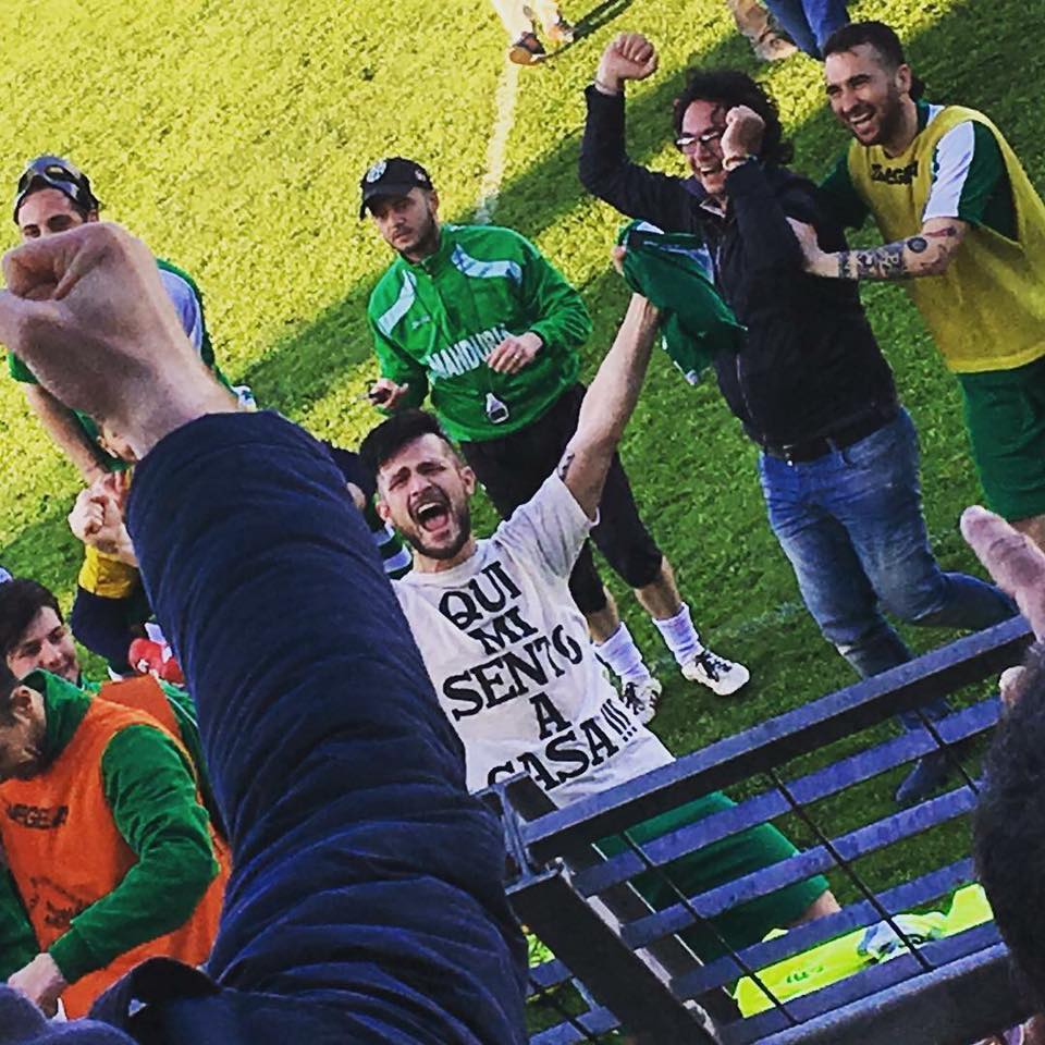 Tutti i ricordi, tutte le gioie, tutti i trionfi e – per dirla tutta – anche qualche recente amarezza… Oggi tutte queste immagini mi passano davanti e si condensano in queste due foto che raffigurano la prima il senso di famiglia che ho voluto creare all’interno di tutto il Manduria dalla società, fino al più profondo dello spogliatoio,nella seconda il senso di appartenenza a questa maglia e al calore che sentivo da parte vostra,tanto da ripetere più volte che da manduriano acquisito mi sentivo a casa!!!