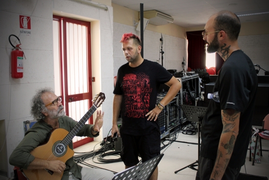 Nel centro polivalente di Zollino i due componenti del gruppo hanno provato insieme ai musicisti residenti, diretti dal maestro concertatore Raphael Gualazzi che ieri sera ha applaudito insieme a migliaia di partecipanti l’Orchestra Popolare nella tappa del festival itinerante di Galatina.