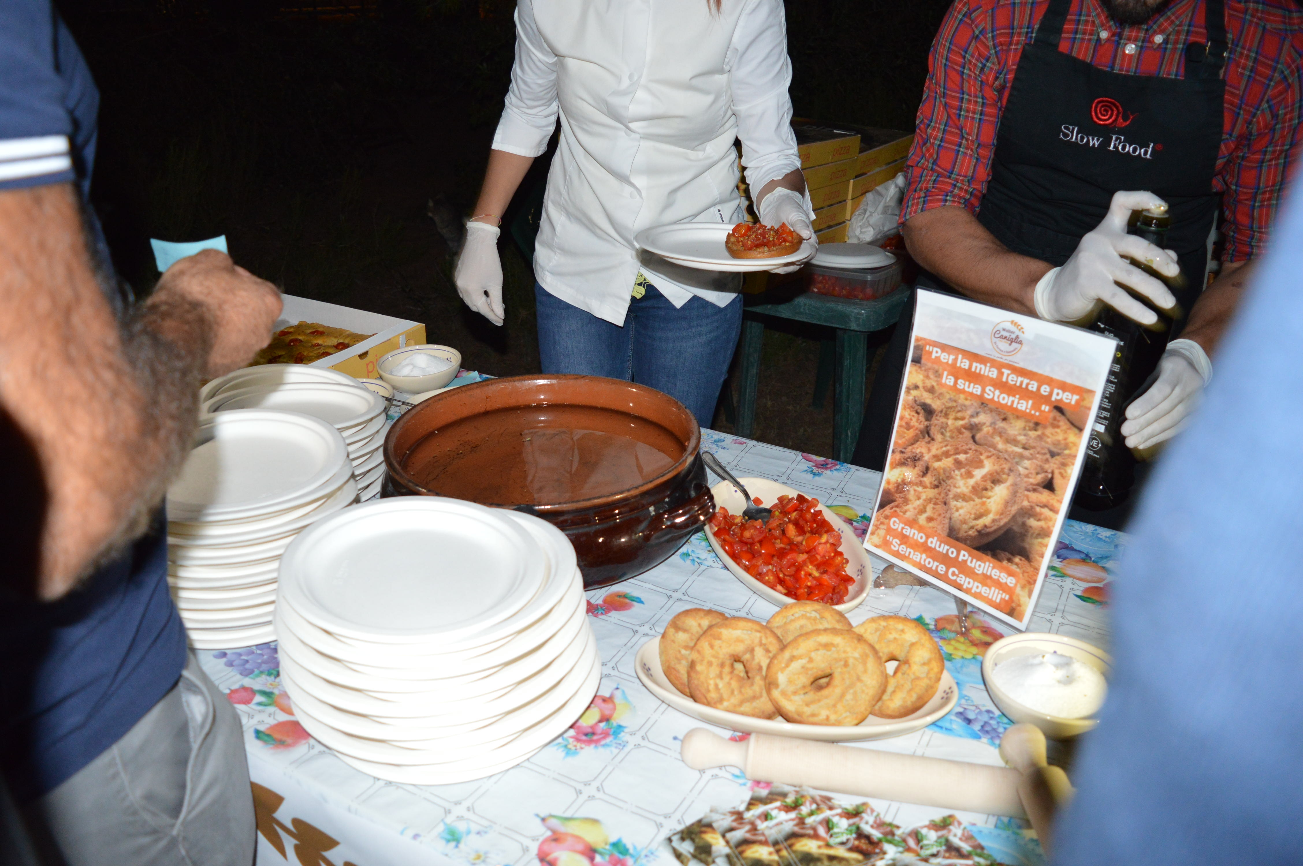 “Le farine sulle nostre tavole: esperienze di consumo consapevole”: è stato questo l’altro tema trattato nella serata promossa da Riserve Naturali e Slow Food Manduria – Terra del Primitivo, nel corso della quale si è evidenziata l’importanza del recupero degli antichi grani per esaltare le proprietà organolettiche non solo dei prodotti che ne derivano, ma anche di quelli a cui si accompagnano, quale appunto il pomodorino di Manduria, proposto al numeroso pubblico secondo le tipiche pietanze che rendono grande il Salento: dalla frisa alle orecchiette, dalla puccia alla focaccia, tutto rigorosamente prodotto con grano Senatore Cappelli.