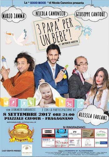 “Tre papà per un bebè” è un lavoro teatrale che sta riscuotendo successo in tutta la penisola, con un cast d’eccezione diretto da Roberto D’Alessandro, il regista che vanta numerose esperienze in varie fictions televisive, nel teatro e nel cinema.