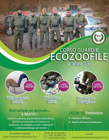 Prossimamente a Manduria si terrà il Corso per aspiranti GUARDIE ECOZOOFILE