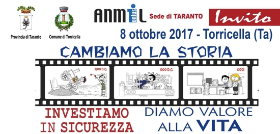 L’ANMIL (Associazione Nazionale fra Lavoratori ed Invalidi del Lavoro) di Taranto annuncia che la celebrazione della 67ª Giornata Nazionale per le Vittime degli Incidenti sul Lavoro, avrà luogo, quest’anno, nel Comune di Torricella l’8 ottobre 2017.