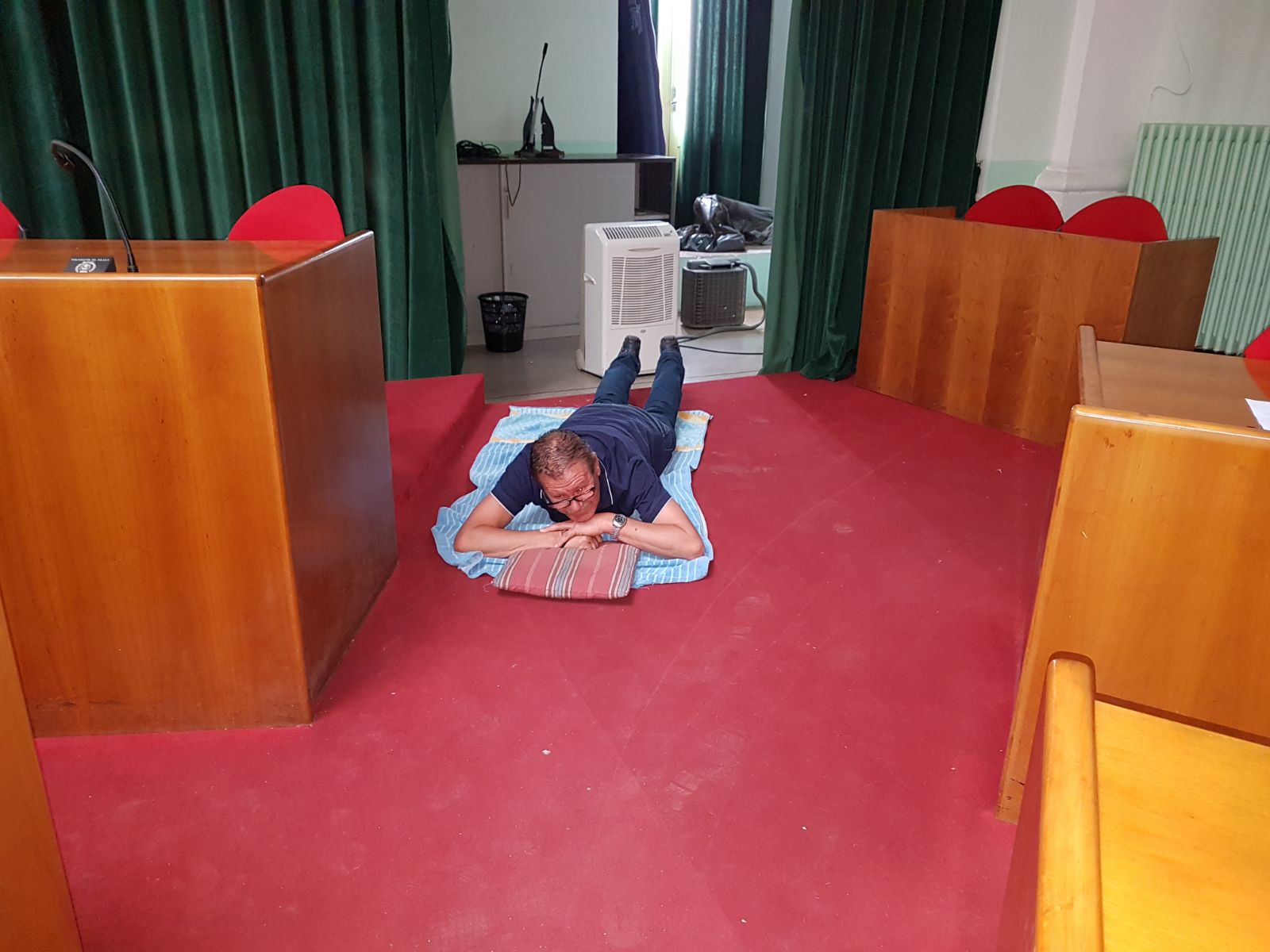 Il risultato? Da diversi giorni i 23 lavoratori sono senza lavoro e hanno di conseguenza proclamato lo stato di agitazione: hanno pacificamente occupato il municipio e, come si vede dalle foto, decidendo di dormire nell’aula consiliare. Oltre alla mancanza di un reddito, la situazione genera disagi anche alla città: naturalmente il servizio di manutenzione (che sarebbe stato preziosissimo in questo periodo in cui partono le scuole) è congelato.