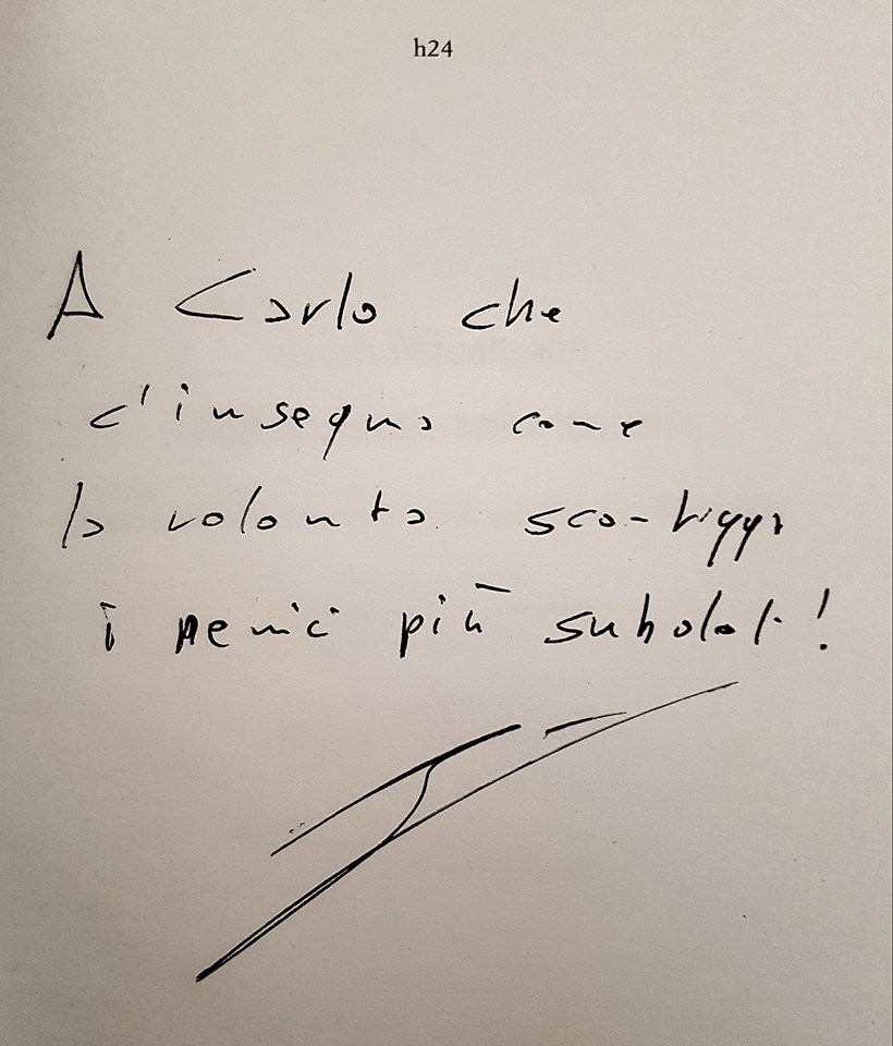 In basso, la foto di Gian Micalessin, la dedica a Carlo Carlagni e una foto di gruppo.