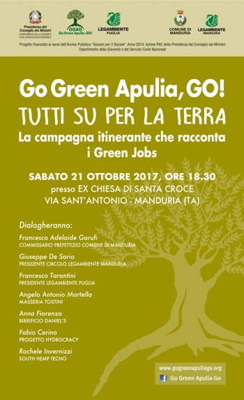 Il circolo Legambiente di Manduria sarà tappa questa sera, alle 18,30, del “Go Green