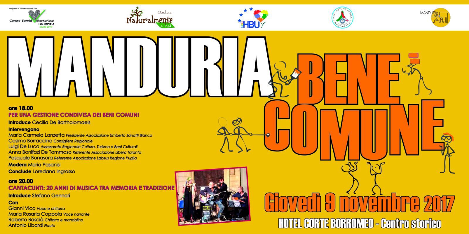 La manifestazione “Manduria Bene Comune” si terrà oggi, giovedì 9 novembre, presso l’hotel Corte Borromeo nel centro storico di Manduria, e si articolerà in tre momenti.