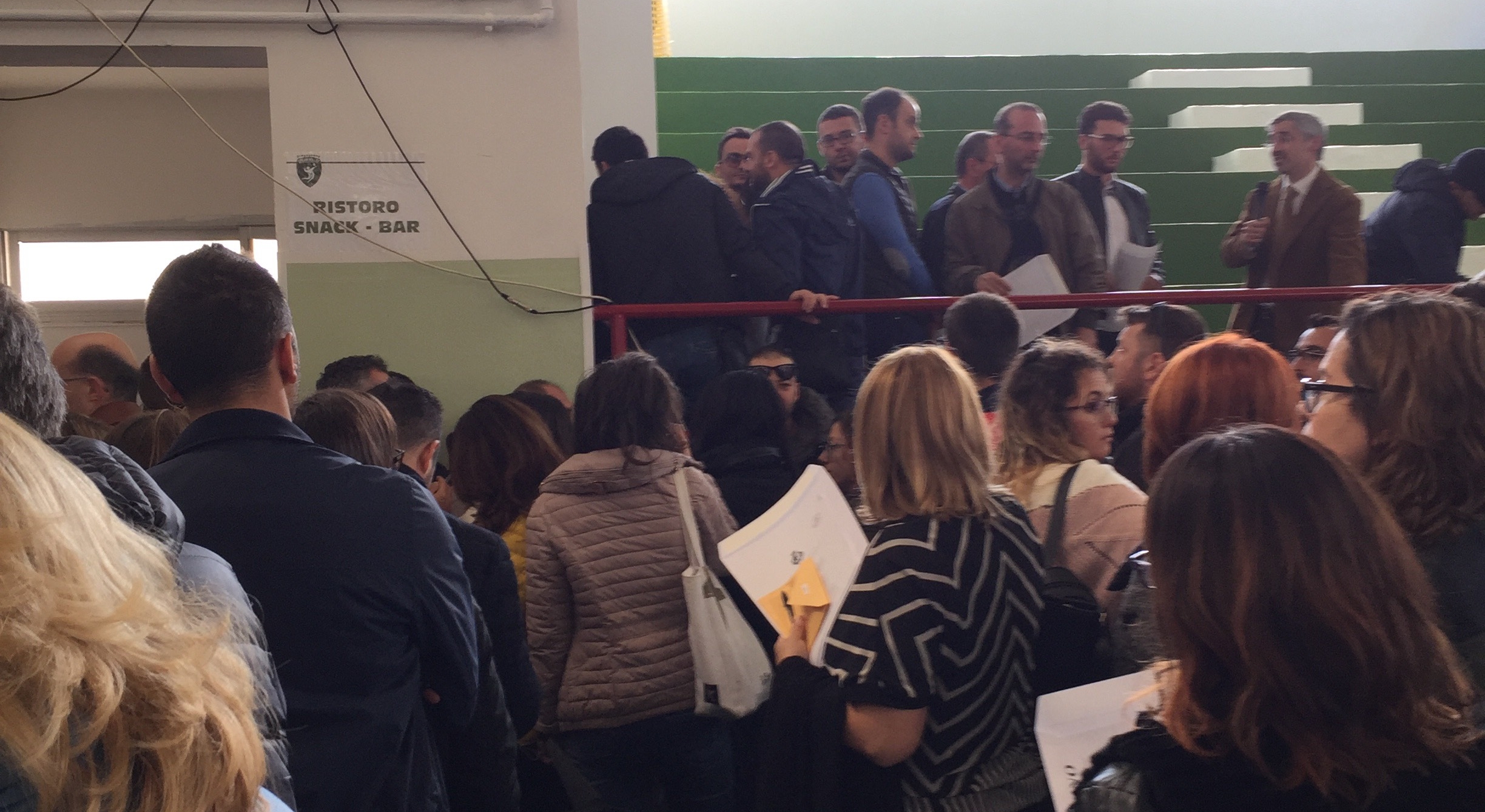 «E’ stata scelta la busta e, quando hanno iniziato a fotocopiare il foglio contenente le domande a risposta multipla, si è inceppata la macchina fotocopiatrice. Quest’operazione è proseguita all’esterno dell’ambiente prescelto quindi, potenzialmente, domande e risposte potevano essere comunicate ai candidati attraverso il telefonino. Al termine della prova, nessuno ha ritirato le buste: ci hanno chiesto di consegnarle ad un incaricato. Nella lunga fila che si è formata, con le buste ancora aperte, tutti avevano la possibilità di confrontarsi con i colleghi o di utilizzare il telefonino. Io ho chiamato ai carabinieri, ma mi è stato risposto che il controllo era delegato ai rappresentanti della Prefettura e alla Guardia di Finanza, che doveva essere presente in borghese».