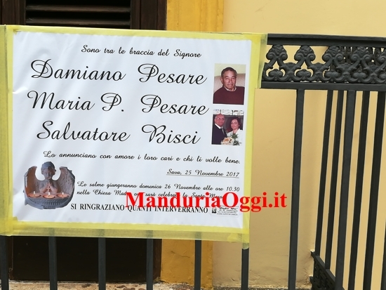 sua figlia Nella e il marito di quest’ultima, Salvatore, ammazzati, sabato scorso, dall’appuntato dei Carabinieri Raffaele Pesare, figlio di Damiano e fratello di Nella. Un gesto inconsulto, forse un raptus di follia, che ha distrutto due famiglie e che ha sconvolto l’intera comunità di Sava.