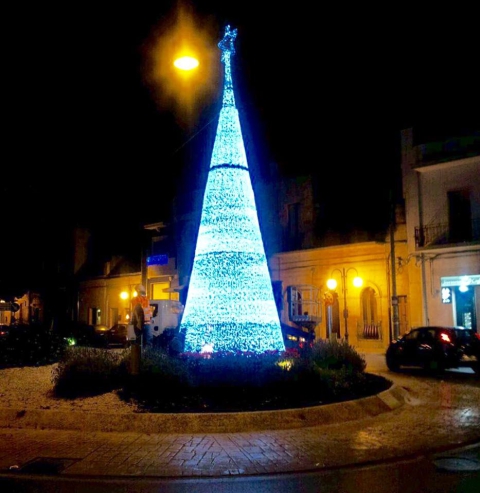 Un trionfo di 135mila luci al led fittamente abbarbicate su una struttura metallica alta più di 10 metri dal piano stradale fino alla stella in punta, illumina dalla vigilia dell’Immacolata, le festività natalizie di Francavilla Fontana e, simbolicamente data la peculiare posizione, di tutto il nord Salento.
