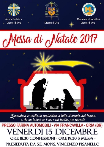 Il MLAC della Diocesi di Oria, che quest’anno vede quale suo nuovo segretario diocesano Cosimo Nardelli, promuove questo appuntamento con il mondo del lavoro da cinque anni: la santa Messa di Natale è stata infatti già celebrata in attività imprenditoriali o commerciali di Sava, Francavilla Fontana, Latiano e Villa Castelli.