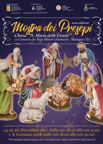 La “Mostra dei Presepi” è organizzata dall’A.P.S. “Play your Place. Il luogo in gioco”, nell’ambito del progetto pluriennnale “Cultura Arte e Fede”, ed è realizzata in collaborazione con la Parrocchia “SS. Natività di Maria Vergine” di Maruggio e con il patrocinio del Comune di Maruggio.