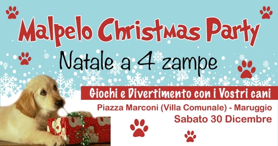 Il 30 dicembre, dalle 16.30 in poi, tutti i cani MALPELO, in collaborazione con il ONE PIECE BAR, si ritroveranno in villa (piazza Marconi) a Maruggio per festeggiare un Natale a 4 Zampe!!!