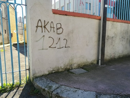 Sulle pareti di una scuola primaria, la scritta “ACAB” a caratteri cubitali, prontamente rimossa, dopo la denuncia di un quotidiano locale.