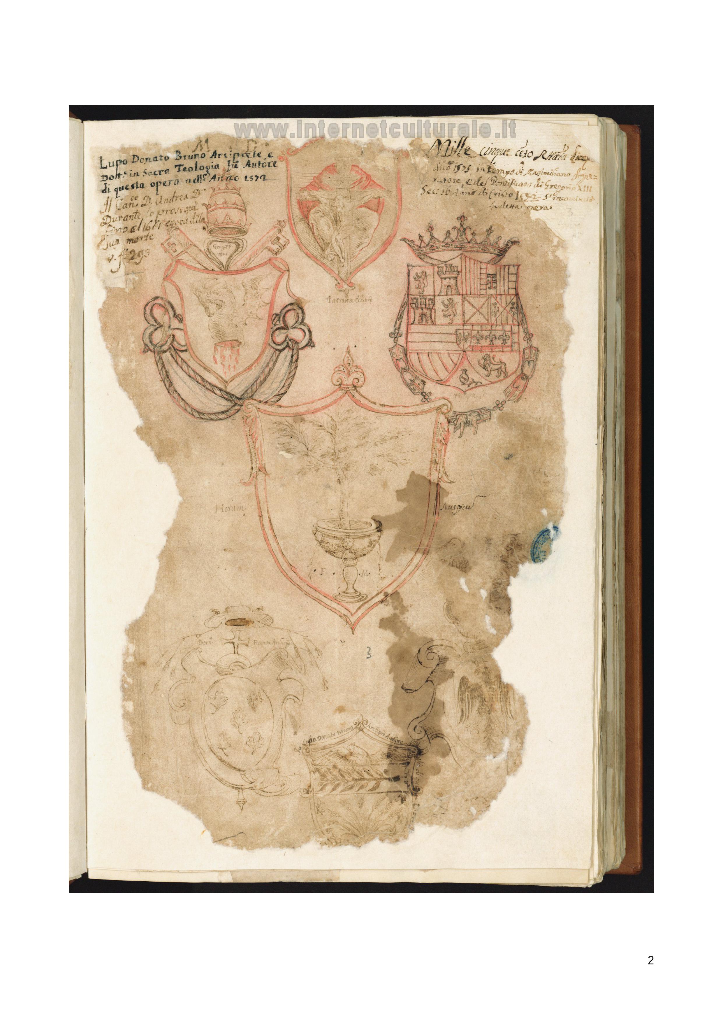 sequenza del portale, l’arciprete Lupo Donato Bruno avrebbe tratto lo spunto per miniare la serie di scudi del Librone Magno, arricchendola (anche perché disponeva di maggiore spazio) con altri emblemi.