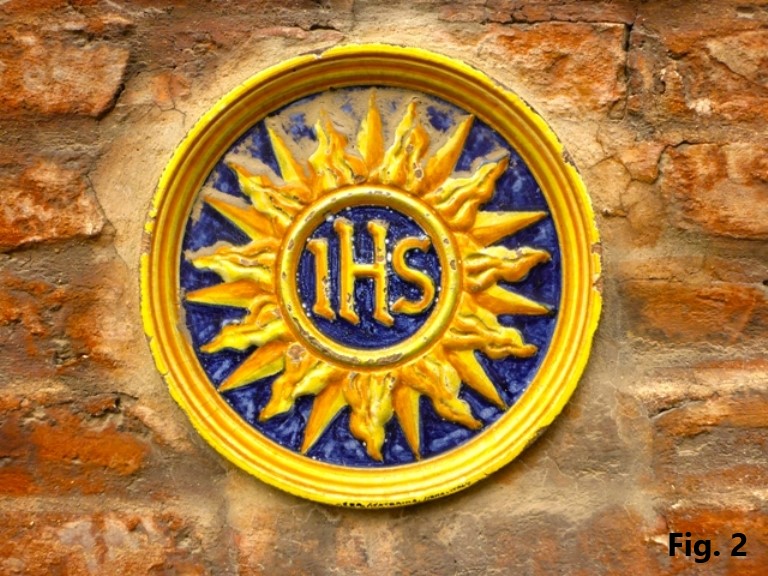 Per tali ragioni, proprio il Crocifisso -che, a mio avviso, ad un attento esame del manufatto risulta sufficientemente visibile- sarebbe da individuare in quell’incrocio perpendicolare di linee che, a prima vista, sembra essere una mera quadripartizione dello scudo.