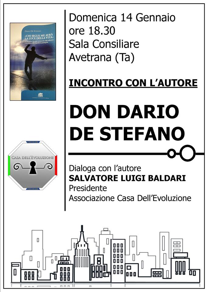 Con grande entusiasmo, quindi, l’associazione “Casa dell’Evoluzione” e la comunità cristiana si prepara a riaccogliere ad Avetrana don Dario De Stefano, amatissimo parroco sin dai tempi del suo operato presso la parrocchia Sacro Cuore. Un’occasione, oltre che di festa e gioia, per valorizzare un’eccellenza della cultura del territorio, attraverso un momento di sano dialogo e riflessione.