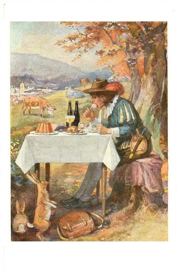 5) Nelle immagini: Georg Mühlberg (1863-1925) illustrazione per lla fiaba dei Grimm “Il tavolino magico, l’asino d’oro e il randello castigamatti”; Giovan Battista Basile, ritratto.