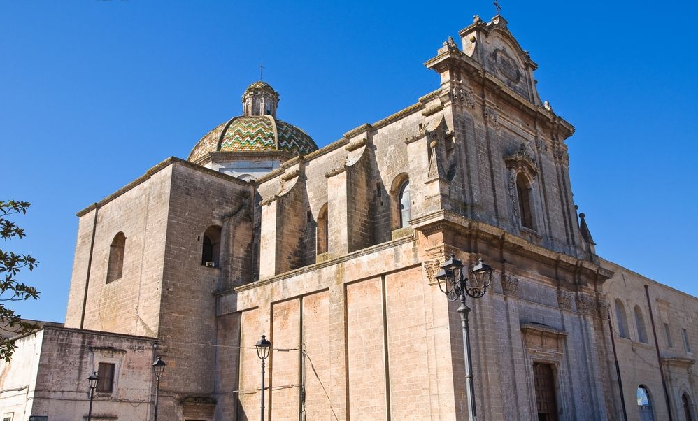 I lavori per la costruzione della chiesa, che si trova lungo corso XX Settembre, iniziarono il 1664 e terminarono proprio tre secoli fa, nel 1718. E’ fra le più monumentali della città messapica, con la sua imponente cupola policroma, che, impostata su un alto tamburo articolato da finestre, domina il panorama cittadino. L’interno è a croce latina, con largo transetto; a destra vi è la morte di San Nicola, a sinistra la Madonna della Cintura e le tele dei Bianchi; dietro l’altare la statua in pieatra della Madonna di Costantinopoli.