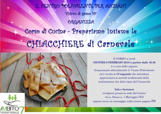 Il Centro Sociale Polivalente per Anziani “Chicco di Grano 10” organizza Corso di Cucina - Prepariamo Insieme le Chiacchiere di Carnevale