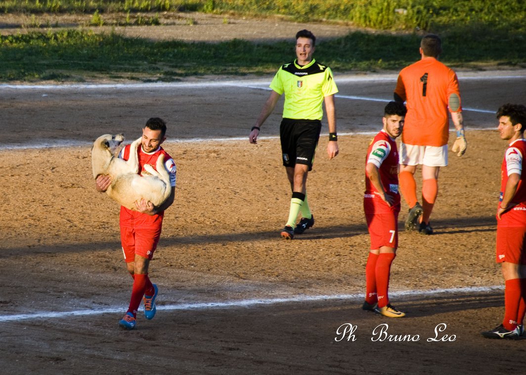 A farlo uscire dal campo, prendendolo letteralmente in braccio (come si può vedere dalla foto scattata da Bruno Leo), ci hanno pensato prima il portiere Petranca, quindi il capitano Cappellini e, infine, i dirigenti dell’Avetrana. Il cane è ritornato sulla tribuna, dai cui gradoni spesso assiste alle partite.