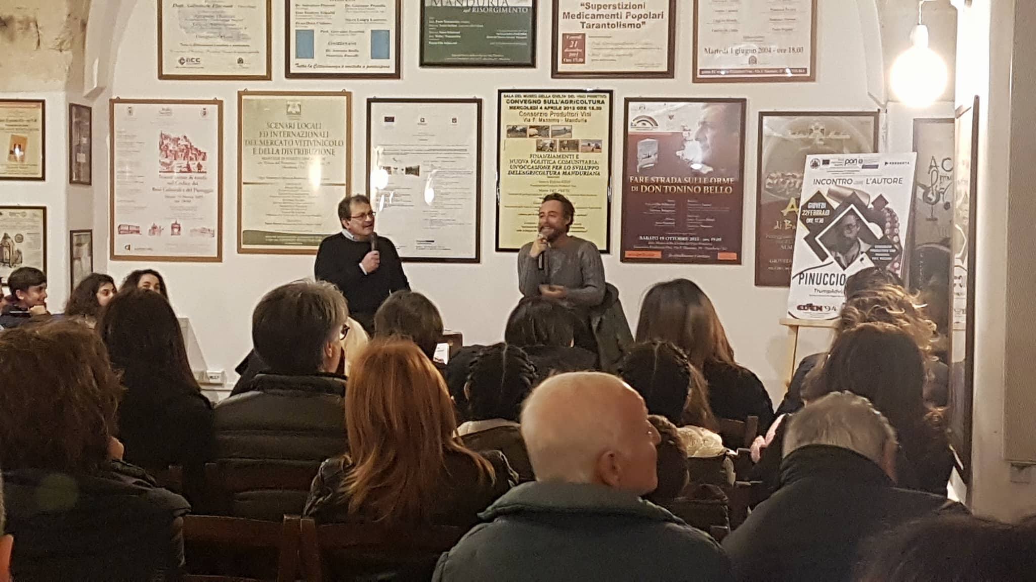 Ospite dell’istituto comprensivo “Francesco Prudenzano”, Pinuccio ha presentato giovedì scorso il suo libro nel Museo del Primitivo dei Produttori di Manduria.