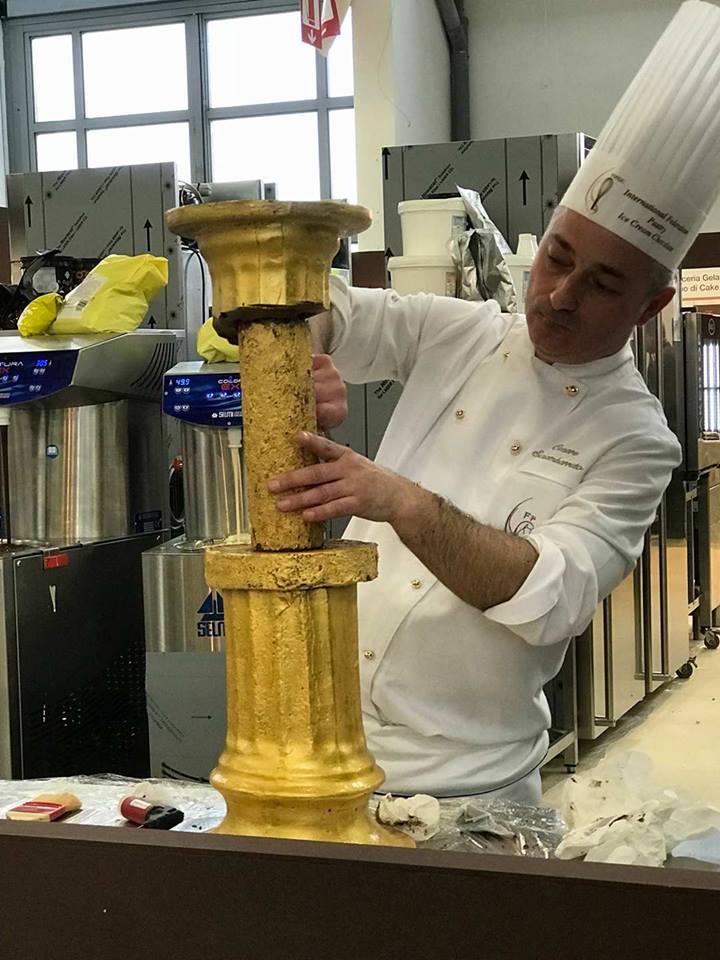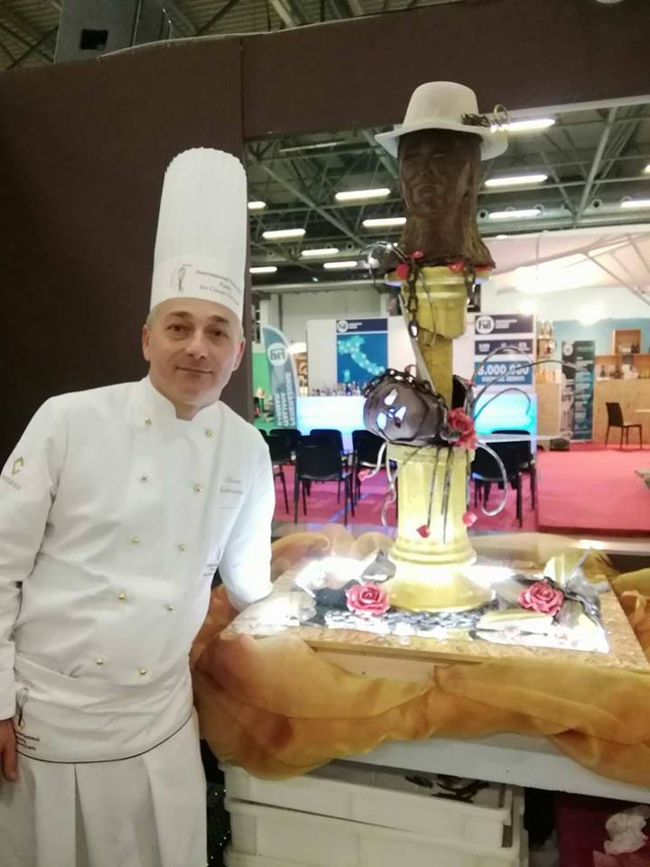 Pasticceria, Gelateria e Cioccolateria, che si sono svolti recentemente a Massa Carrara. Cesare, che ha gareggiato nella sezione “cioccolateria”, ha sfiorato il podio presentando il lavoro “La maschera di ferro”, scolpita a mano.