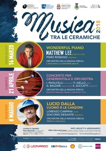 Gran finale martedì 8 maggio con il tributo a Lucio Dalla, l’uomo e le sue canzoni. La voce di Lorenzo Campani sarà accompagnata dall’Orchestra della Magna Grecia diretta dal maestro Giacomo Desiante.