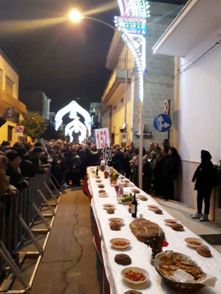 si indica la tavola dei poveri), mai realizzata al mondo. La lunghezza non è stata casuale: ha inteso infatti ricordare l’anniversario (appunto, il 152°) della proclamazione di San Giuseppe a santo patrono di San Marzano.