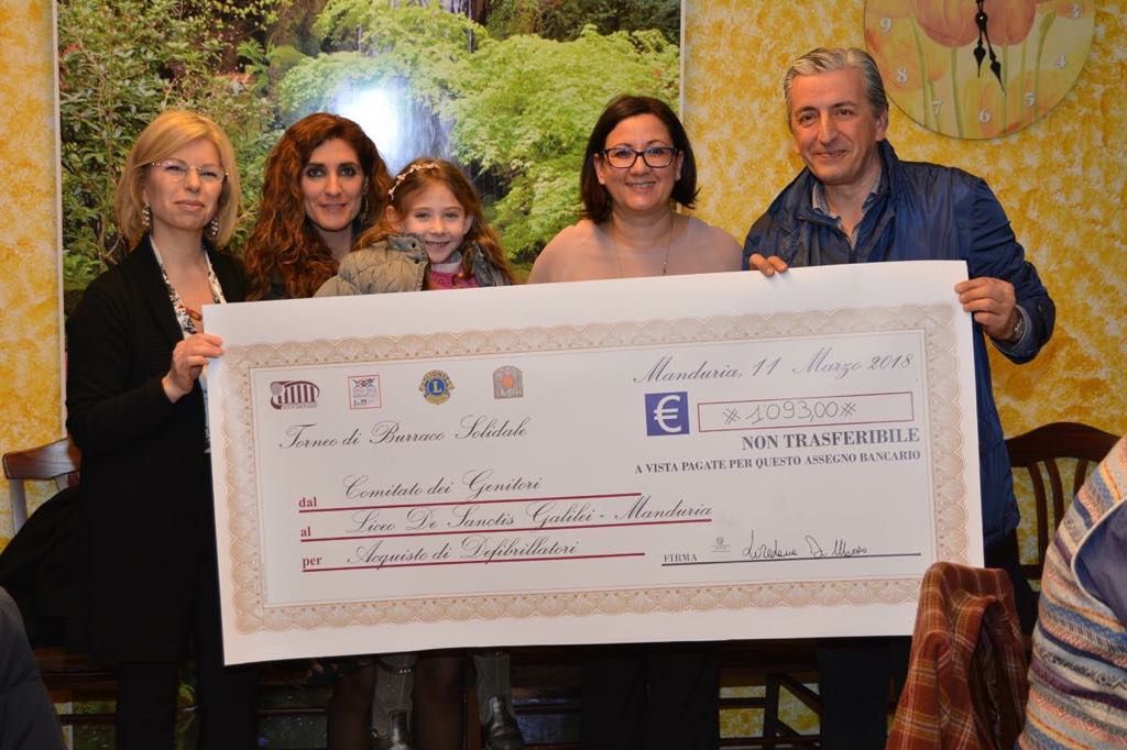 presso la Masseria “Lella” e organizzato dal Comitato dei Genitori del liceo “De Sanctis-Galilei” di Manduria, con la collaborazione dei Lions Club e delle Associazioni Sportive Sociali Italiane, il cui ricavato è stato interamente devoluto all’acquisto di due defibrillatori, che saranno presto collocati nelle due rispettive sedi dell’istituto.