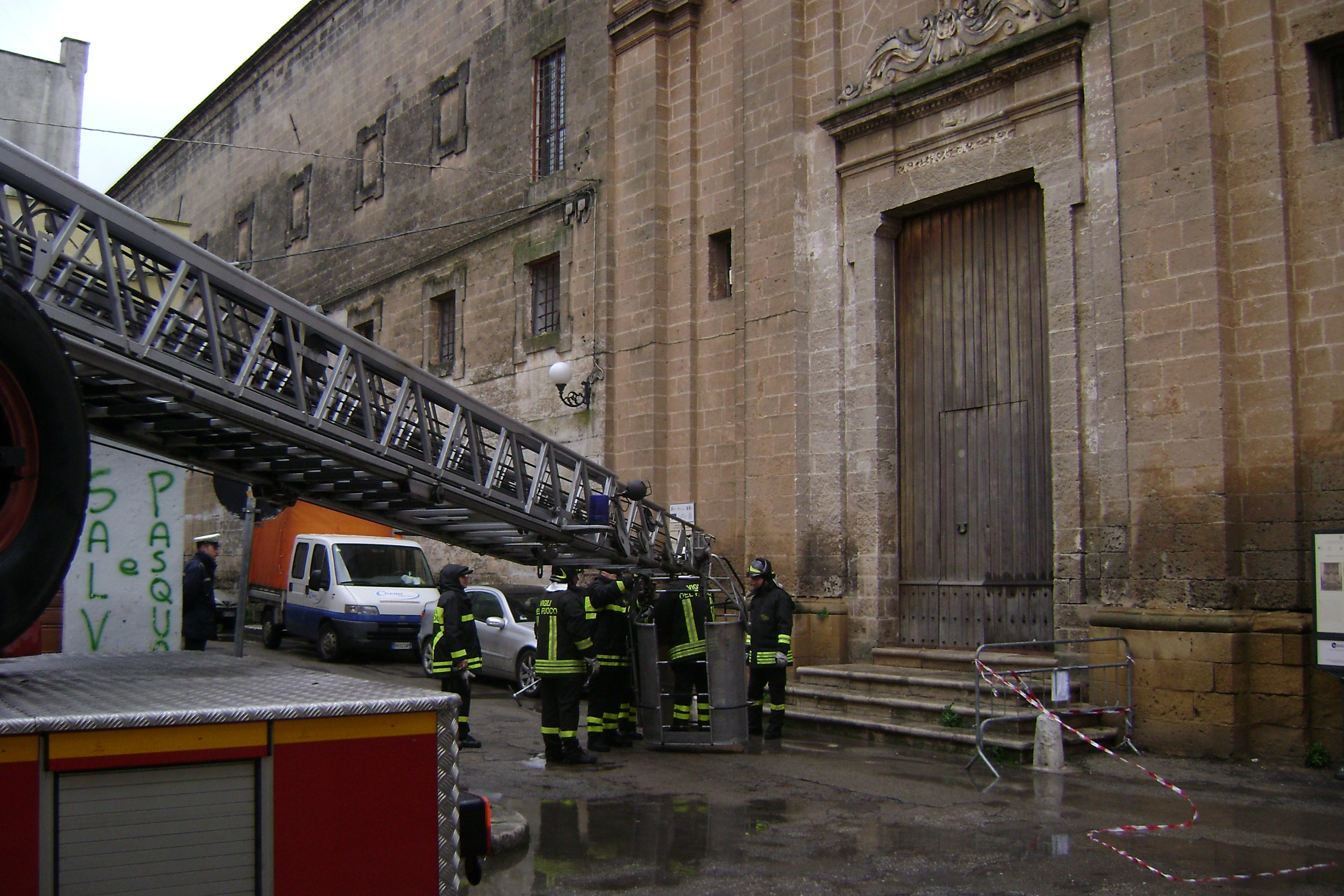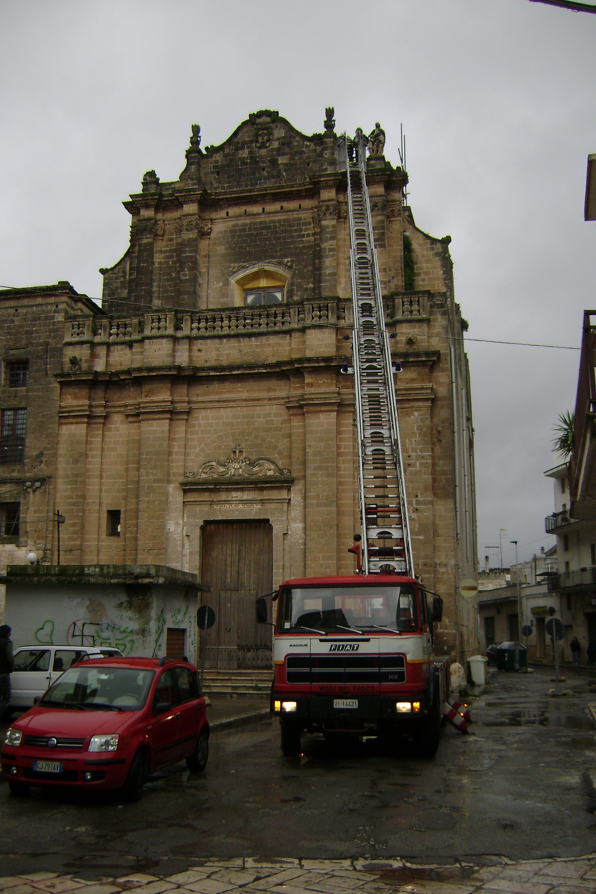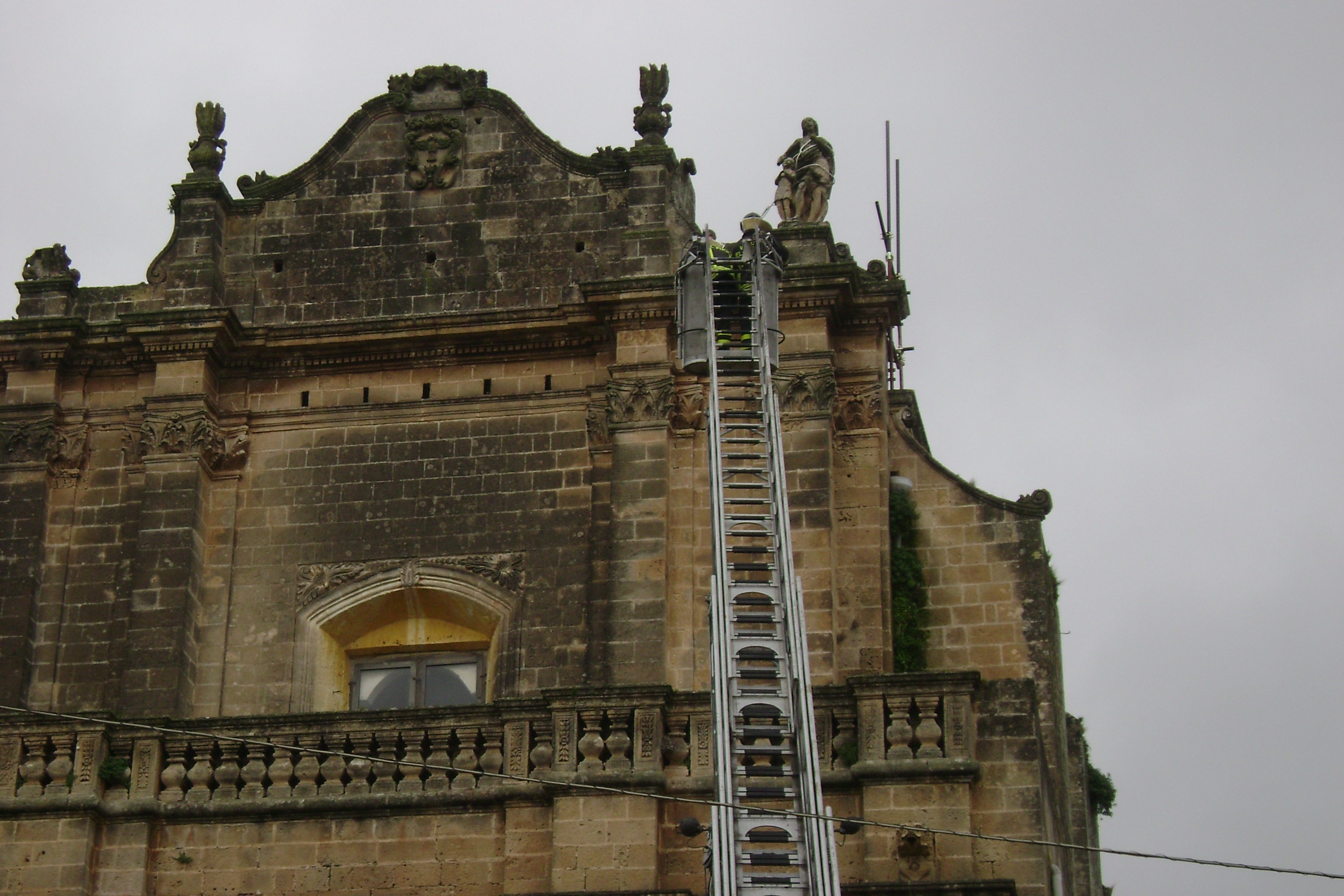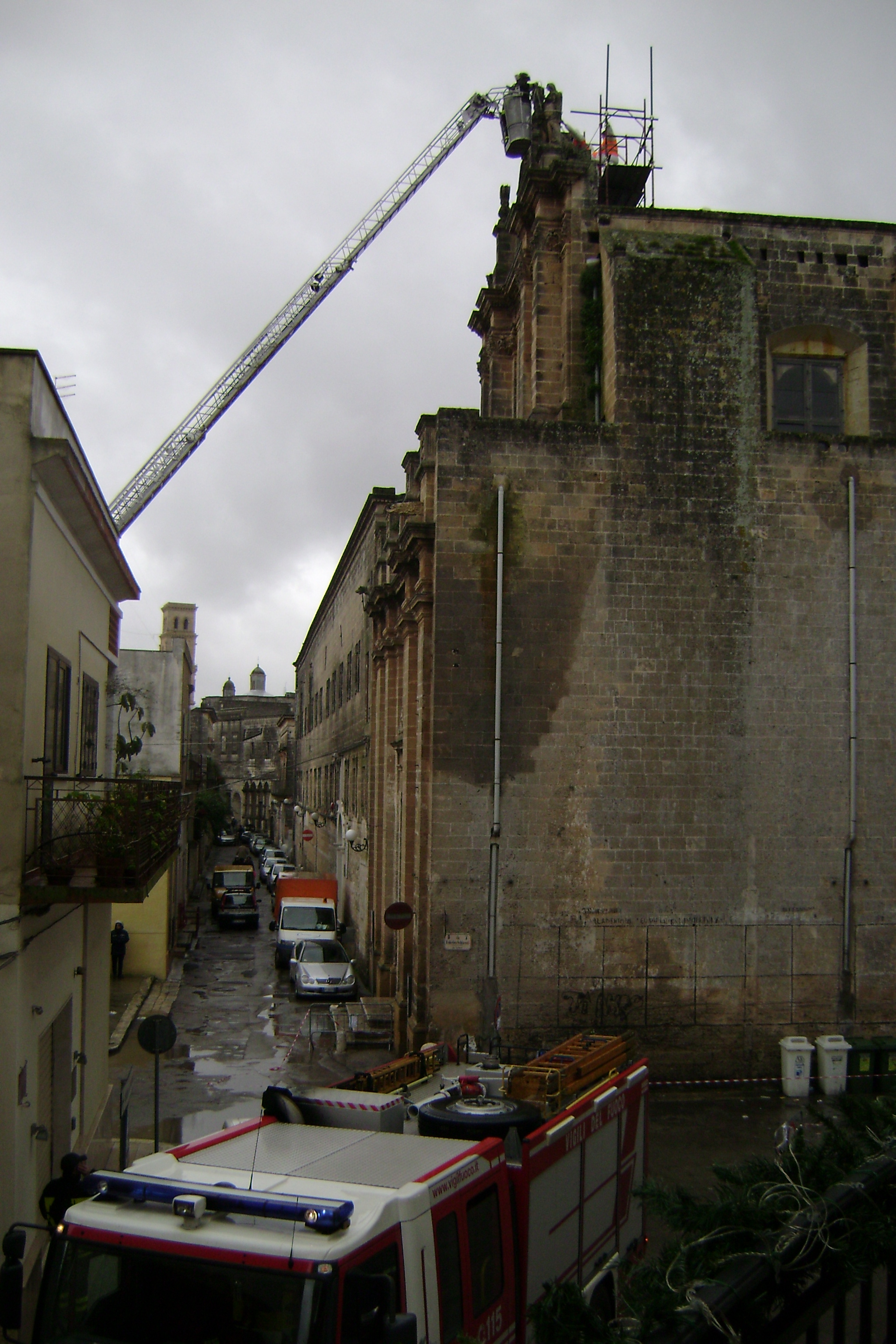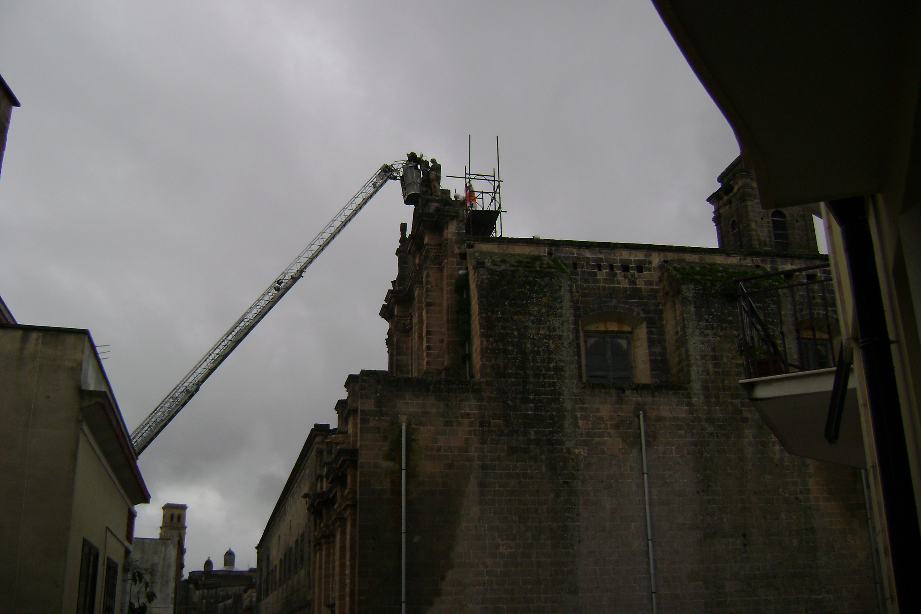 ingabbiare la statua posta in cima alla splendida Chiesta dello “Spirito Santo”, in via Omodei a Manduria, datata 1726.