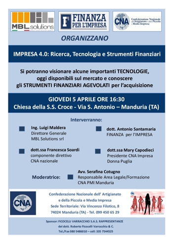 E’ il tema di un convegno che, promosso da CNA-Piccole e Medie Imprese di Manduria, CNA Impresa Donna di Manduria e MBL Solutions (azienda barese attiva