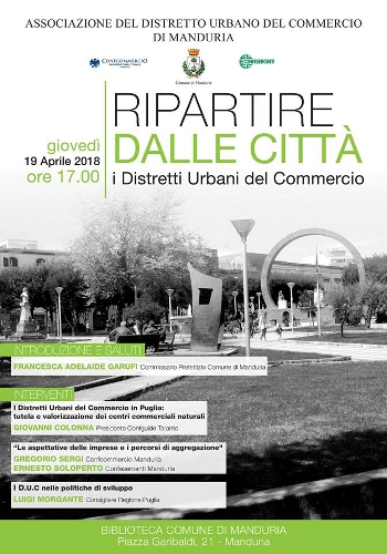 ufficiale del Distretto Urbano del Commercio di Manduria, alle ore 17, presso la biblioteca comunale.