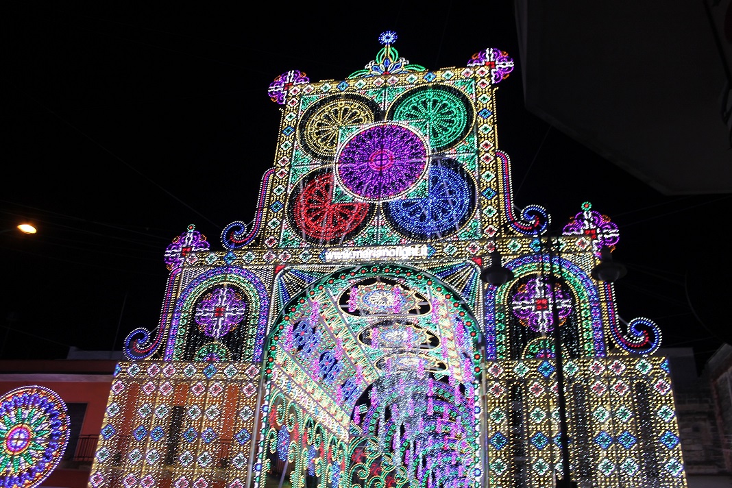 Anche quest’anno inoltre, le luminarie saranno allestite dalla premiata ditta “Marianolight” di Corigliano d’Otranto. “Ingresso a Palazzo”, questo è il titolo della galleria a ritmo di musica che in tutte le serata allieterà il pubblico con fantastiche e molteplici accensioni. Un grandioso palazzo rinascimentale accoglierà il visitatore che sarà affascinato dapprima dalla maestosità della struttura e poi trascinato nella magica dimensione dei giochi di luce e musica. Galleria “arte moderna” con tredici archi – doppio cielo appeso, doppio lampadario mt. 5 x 6 e grande portale mt. 27 x 29 con tecnologia “RGB”, con effetti led da 50.000 microlampade, effetto star flash da 1200, effetto nevicata con 150 tubi snowfall.