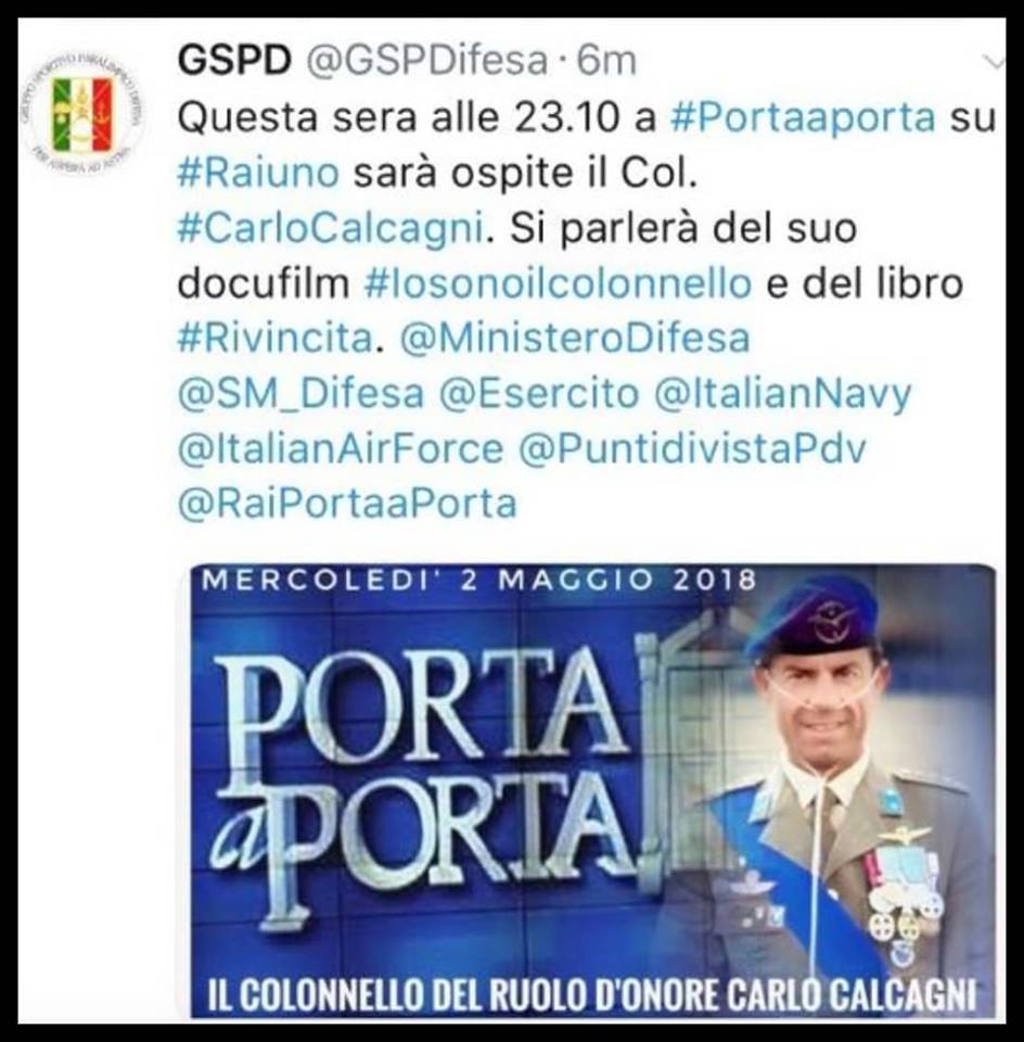 Si parlerà anche del docu-film sulla sua vita. Ecco il commento del col. Calcagni