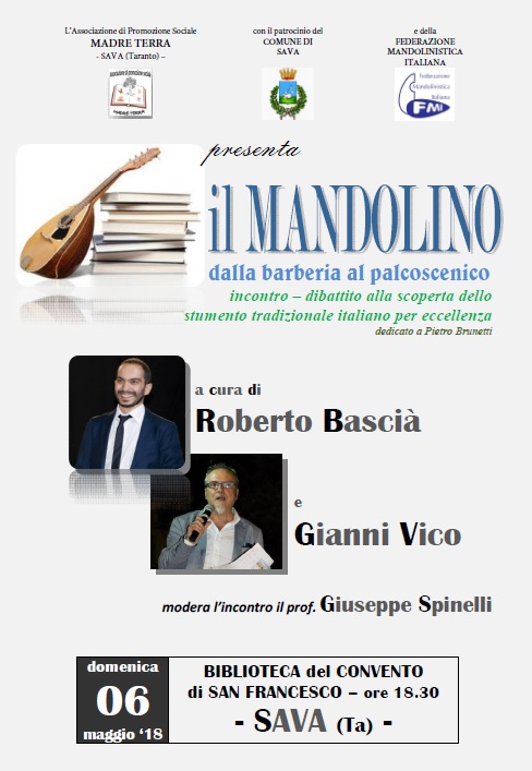 Appuntamento, quindi, questa sera, alle 18.30, nella biblioteca del convento San Francesco, per percorrere insieme questo percorso evolutivo del mandolino, grazie all’impegno vivo dell’associazione “Madre Terra” di Sava.