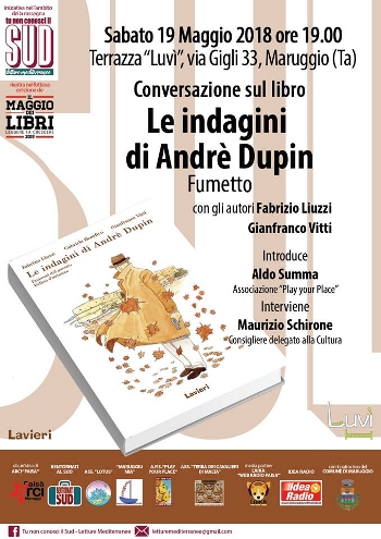 Mediterranee”, questa sera (sabato), alle ore 19, la terrazza del B&B “Luvì” (in via Gigli 33) ospiterà la presentazione del fumetto di Fabrizio Liuzzi, Gianfranco Vitti e Gabriele Benefico dal titolo “Le indagini di Andrè Dupin” (Lavieri Editore).