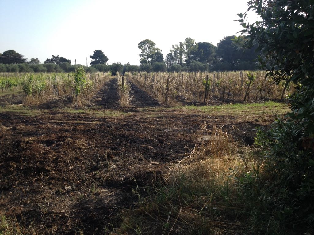 Un incendio, quasi certamente di natura dolosa, ha distrutto, lunedì mattina, mezzo ettaro del vigneto dell’istituto agrario di Manduria.