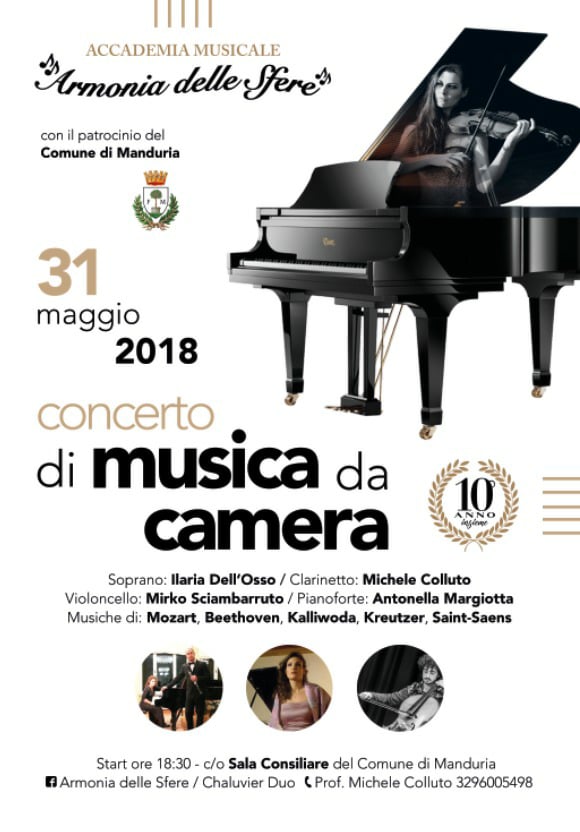 Il concerto di musica da camera tenuto dell’Armonia delle Sfere è il secondo appuntamento della rassegna concertistica organizzata nel 2018 dall’accademia in occasione del 10° anniversario della sua fondazione.