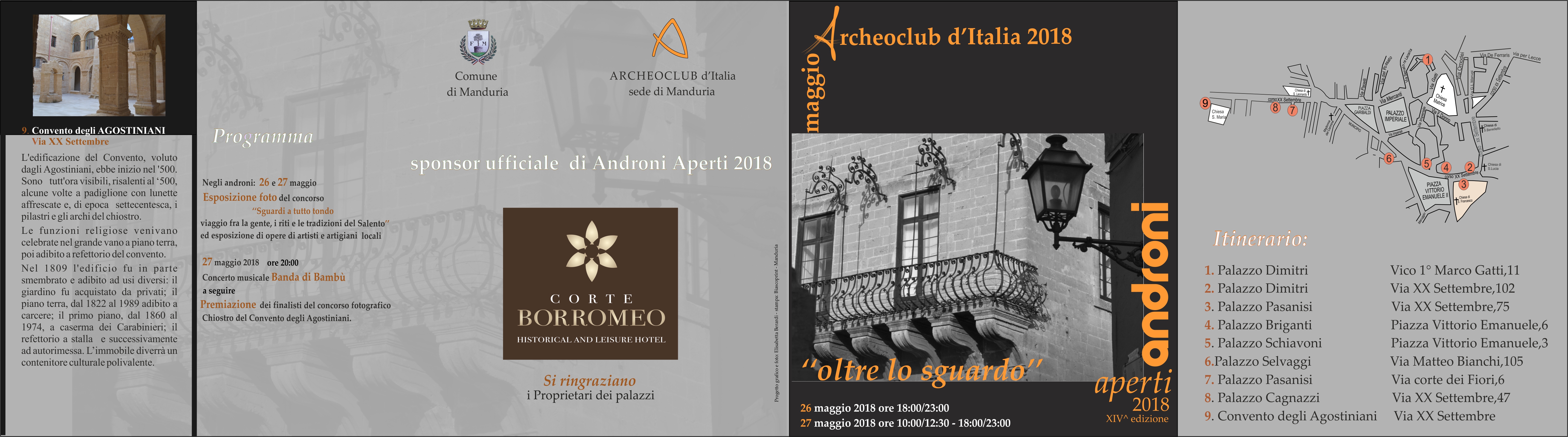 Tutto pronto per la quattordicesima edizione di “Androni aperti”, la manifestazione che, inserita nel programma “Maggio Archeoclub 2018”, si svolge tradizionalmente nell’ultimo fine settimana di maggio.