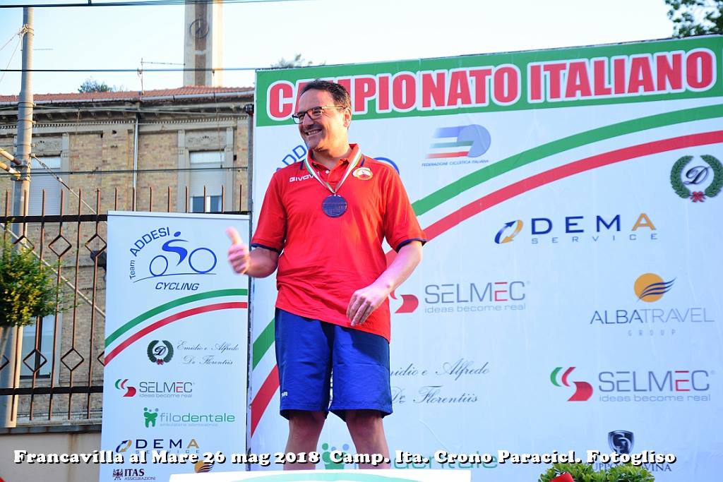 Farroni, nuovo campione italiano della categoria, ha chiuso la prova con un vantaggio di poco meno di 3 minuti rispetto a Leo Melle, che nella foto è sul podio di Francavilla a Mare con l’argento al collo. Medaglia di bronzo, infine, a Fabio Nari, che ha fermato il cronometro dopo 34 minuti e 37 secondi.