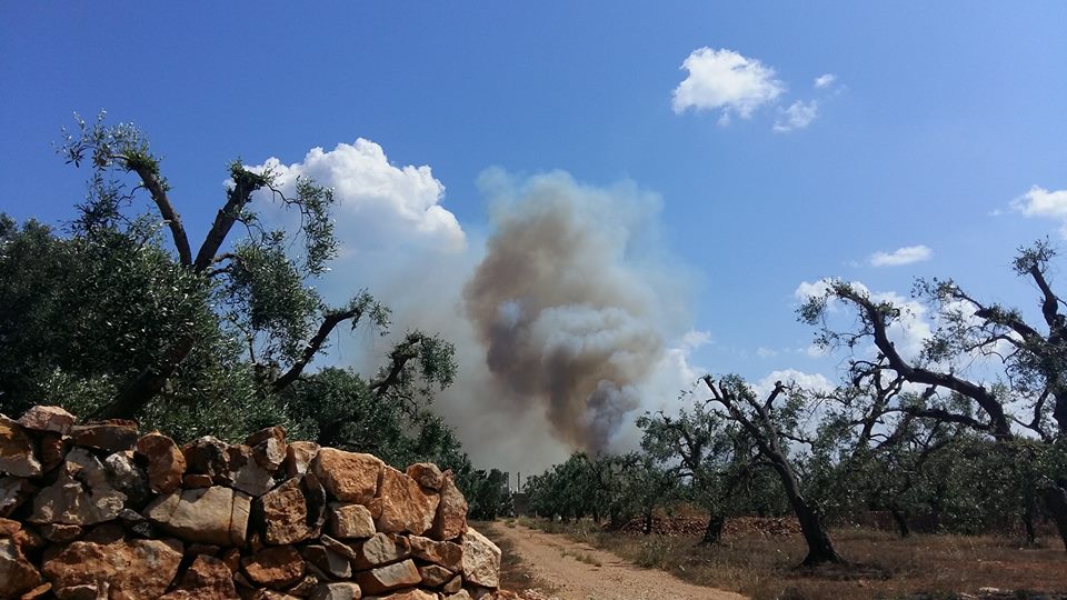 Un vasto incendio sta interessando da alcune ore la zona interna del bosco in località “Sferracavalli” a nord di Maruggio.