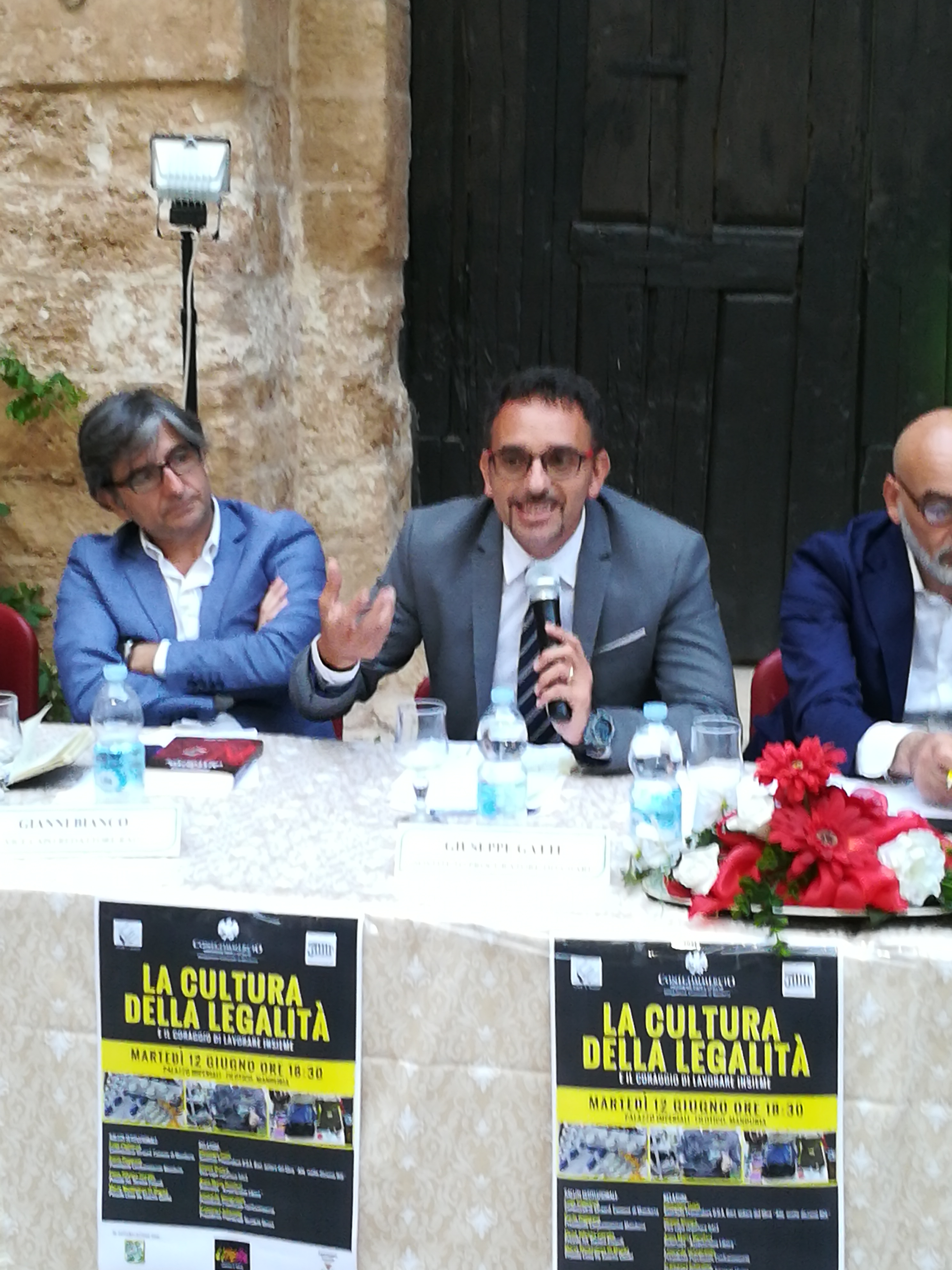 E’ il messaggio che il magistrato della Direzione Distrettuale Antimafia di Bari Giuseppe Gatti e il giornalista Gianni Bianco hanno voluto lanciare con il libro, scritto a quattro mani, “Alle mafie diciamo Noi”, presentato l’altro ieri sera nel corso di una manifestazione promossa da Confcommercio. Iniziativa che ha coinvolto diverse associazioni del posto e gli studenti delle scuole superiori della città, che all’inizio dell’evento hanno interpretato e proposto la discussione della seduta dell’assemblea costituente nella fase della scelta del testo dell’articolo 1 della Costituzione.