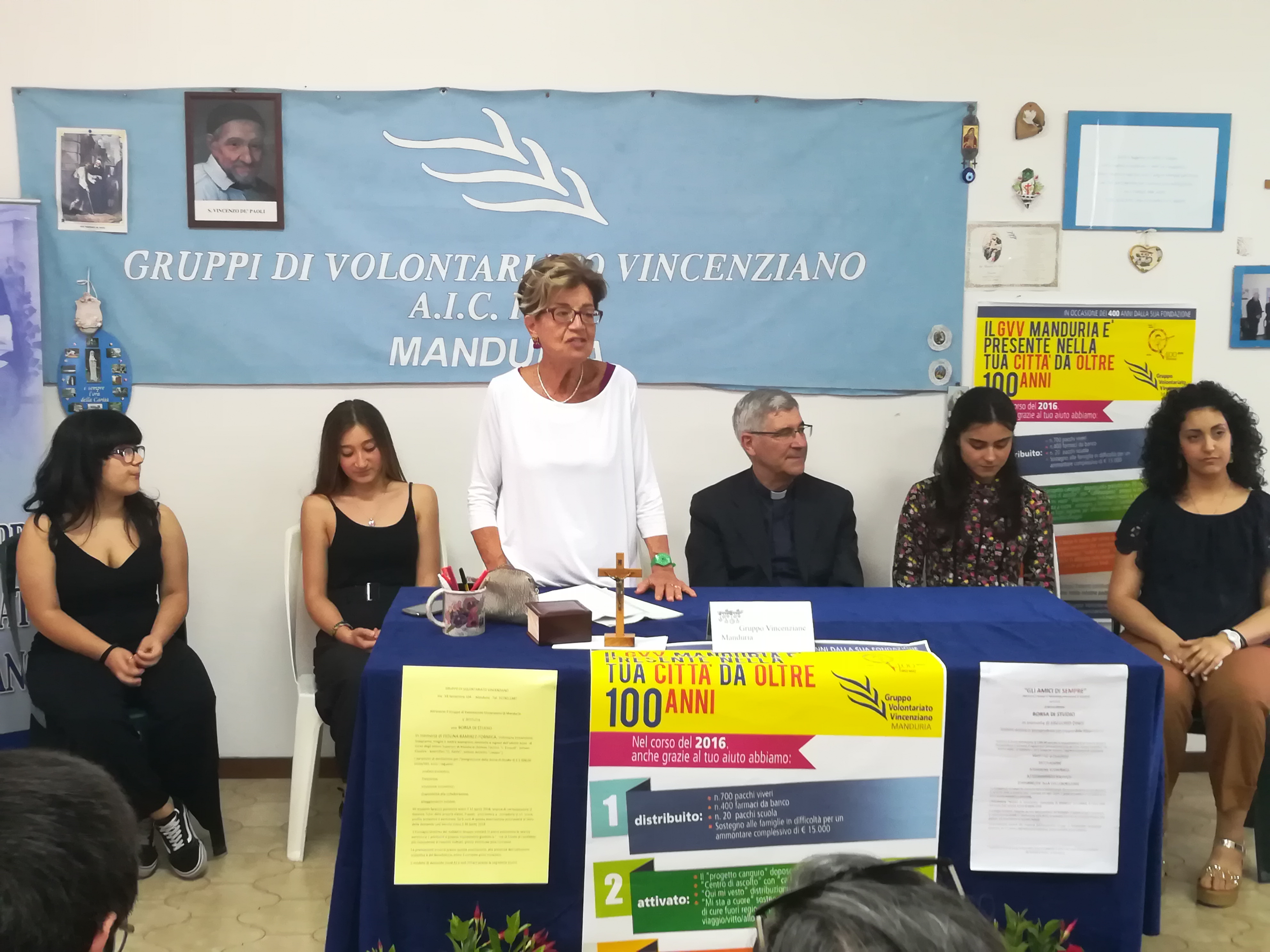 «Le due borse di studio per i ragazzi maturandi sono state messe in palio dai coniugi Formica-Moscarelli e dal gruppo “Amici di sempre di Gregorio”» ha ricordato la presidente del Gruppo Volontariato Vincenziano di Manduria, Lucrezia Settanni. «Attraverso un assegno o attraverso le postazioni multimediali, aiuteremo le quattro ragazze scelte nella prosecuzione dei loro studi. Per noi Vincenziane, conoscere questi ragazzi motivati e seri, che portano avanti con determinazione il proprio progetto di vita, e i loro nuclei familiari così coesi, è un privilegio, oltre che un’occasione di crescita. Finchè ci saranno ragazzi così e famiglie tanto unite, c’è da sperare in un mondo migliore».