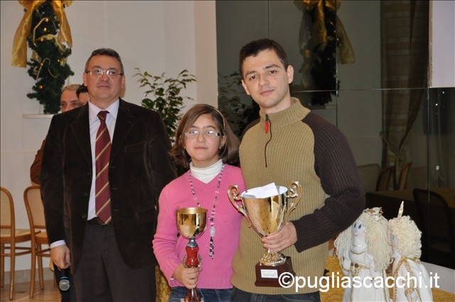 Nella classifica finale da evidenziare il giovane leccese Andrea Fasiello, primo classificato nella fascia C nonchè 10° assoluto, Vincenzo Marrone primo della fascia D, i giovanissimi barlettani Antonio Distaso primo nella fascia E ed Enrico Dibari primo nella fascia G. Infine la barlettana Alessia Santeramo, 11 anni, prima della fascia F e prima tra le donne, quindi Campionessa Femminile Semilampo 2009, titolo che fa il paio con quello femminile U10 conquistato a Merano nel 2008. Il collegio arbitrale era composto dall’Arbitro Fide Giovanni Sedile, l’Arbitro Nazionale Alberto Pontecorvo e gli Arbitri Regionali Rosi De Luca, Fernando Beretta e Vincenzo Spina. Le postazioni di gioco in buona parte erano coperte con orologi elettronici e set in legno, e poi una novità per l’Italia, gli abbinamenti dei turni e la classifica videoproiettati su un grande schermo, unu modo nuovo ed attraente di comunicare con tutti gli scacchisti che ha trovato un immediato riscontro positivo nei giocatori, negli arbitri e negli spettatori. Infine la cerimonia di premiazione, condotta alla presenza del Vicepresidente della Federazione Scacchistica Italiana Luigi Troso, con le ragazze partecipanti al torneo che hanno premiato i vincitori dei premi assoluti e delle varie fasce,completa la cronaca di una bella giornata di scacchi. Dopo questo campionato semilampo, due semifinali (Massafra 2004-2005) e due finali del campionato italiano assoluto (Martina Franca 2007-2008), una finale nazionale dei Giochi Sportivi Studenteschi (Monopoli 2007), rimane solo una manifestazione nazionale rilevante che meriterebbe di svolgersi in Puglia: i Campionati Italiani Giovanili U16, che potrebbero essere uno degli obiettivi da perseguire in un prossimo futuro facendo leva sulla vocazione turistico-estiva della nostra regione.