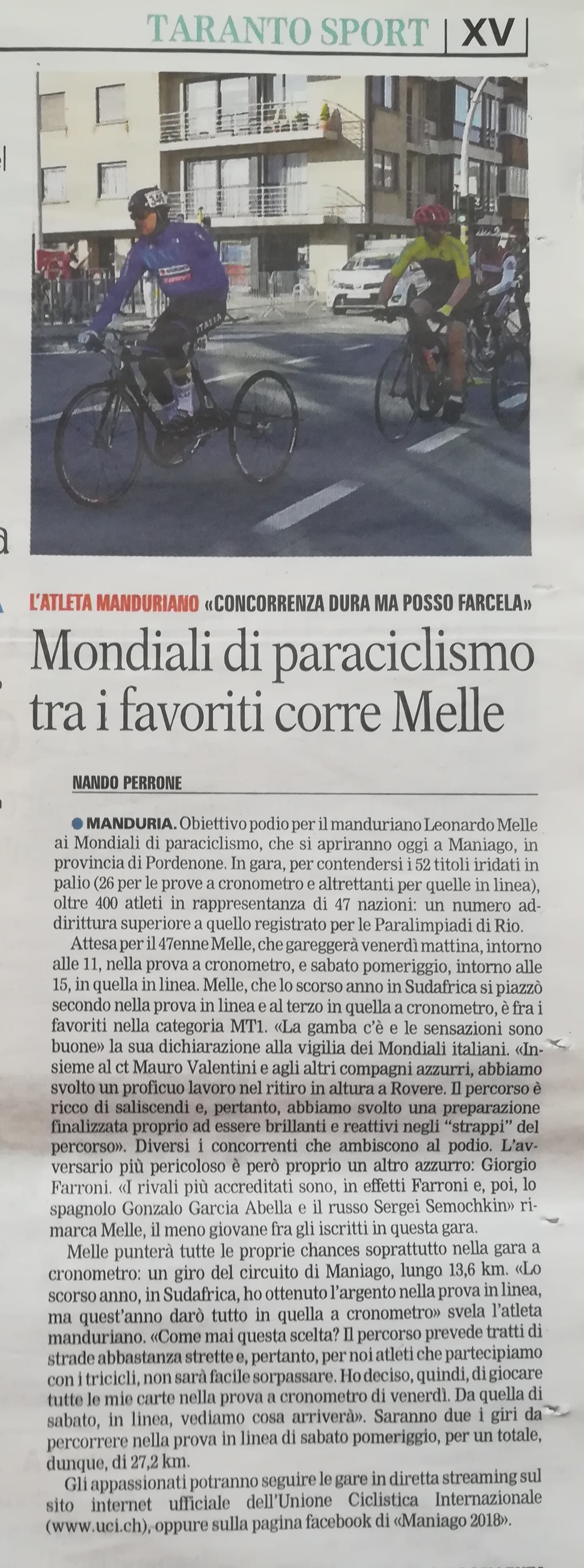 Correrà domani nella prova a cronometro e sabato in quella in linea