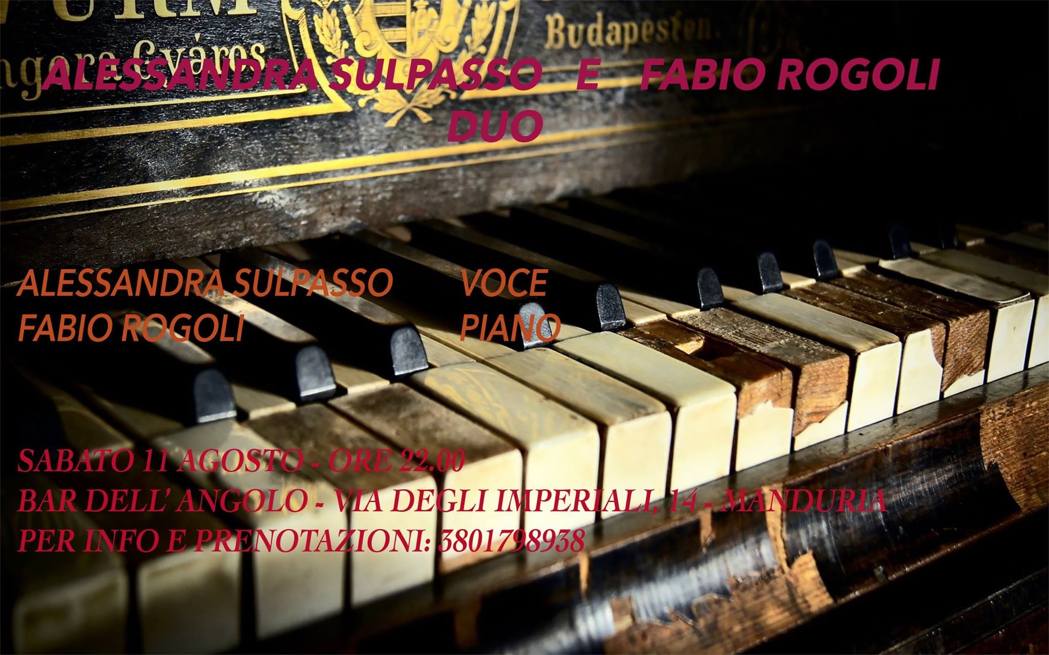 Sabato 11 agosto, alle ore 22, al Bar dell’Angolo (via degli Imperiali, 14 – Manduria) di Carmelo Massafra, Alessandra Sulpasso (voce) e Fabio Rogoli (piano) si esibiranno in concerto proponendo un fascinoso repertorio comprendente alcuni intramontabili standard (reinterpretati ad hoc) tratti dal Great American Songbook, unitamente a celebri brani della musica italiana riarrangiati in chiave jazz, nonché storiche composizioni appartenenti alla musica popolare brasiliana.