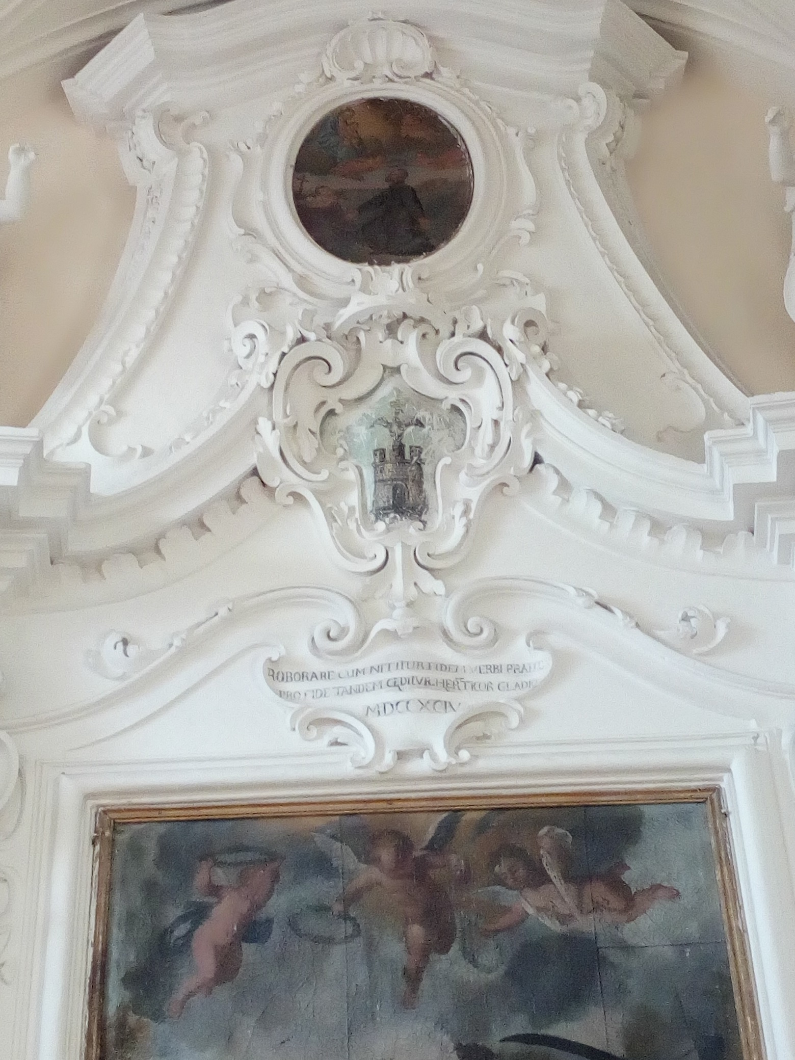 La notizia, finora ignota, é frutto di una mia fortunata intuizione sorta a seguito di attento esame del manufatto e di confronto con il modello araldico “ufficiale” dell'arma gentilizia del casato di origini genovesi, presente anche in Casalnuovo-Manduria dal XVI secolo.