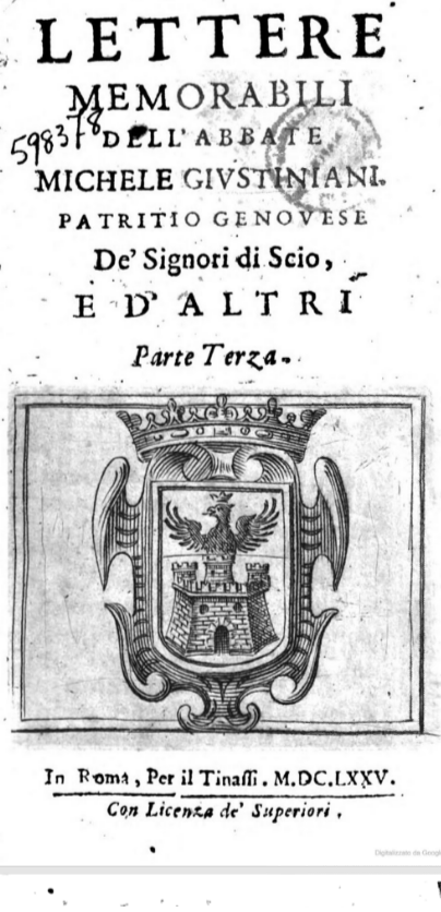 Alla pagina 460 dedicata, come altre precedenti alla famiglia Giustiniani, é scritto: