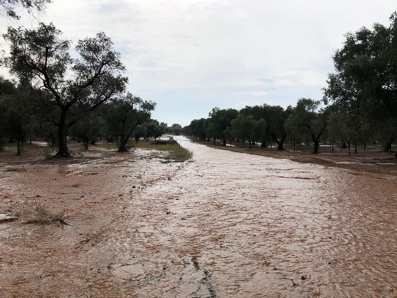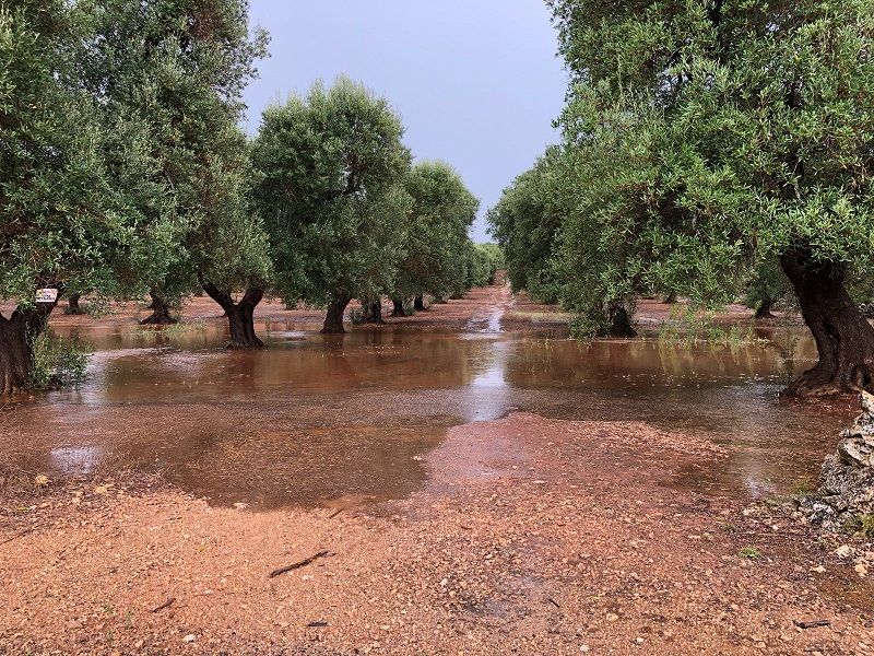 La situazione in molte zone della Puglia è davvero critica con la raccolta di uva sia da tavola che da vino ormai compromessa, con oliveti nei quali si è perso ormai l’intero raccolto e con danni alle piante arboree, alle produzioni orticole, ma anche alle strutture aziendali e alle strade.